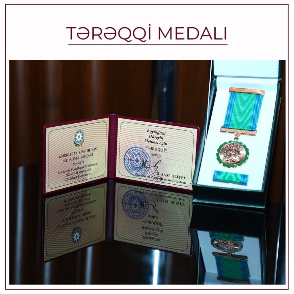 Türkiyə-Azərbaycan İş Adamları və Sənayeçiləri İctimai Birliyinin İdarə Heyətinin sədri Hüseyin Büyükfıratın Azərbaycan Respublikasının iqtisadi inkişafına verdiyi töhfəyə və sahibkarlıq sahəsində səmərəli fəaliyyətlərinə görə Azərbaycan Respublikasının prezidenti cənab İlham Əliyevin sərəncamına əsasən təltif edildiyi “Tərəqqi” medalı Azərbaycan Respublikasının İqtisadiyyat Nazirliyi və KOBİA-nın təşkilatçılğı ilə həyata keçirilən təbdbirdə Azərbaycan Respublikası Prezidentinin köməkçisi cənab Şahmar Mövsümov tərəfindən təqdim edildi.
